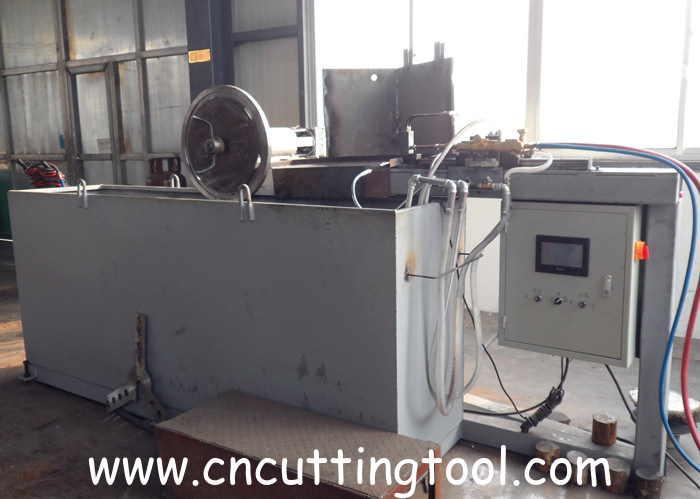 L'oxygène liquide et le propane sont convertis en gaz et acheminés vers le générateur de flamme au moyen d'un vaporisateur. Le générateur de flamme est monté sur un rail mobile et ajuste la position du générateur de flamme en fonction de l'épaisseur et du diamètre de la lame de scie. Après le positionnement, démarrez l'entraînement de l'arbre principal pour faire tourner la pièce, puis l'allumage, ouvrez l'eau de refroidissement de la pièce, ajustez la flamme en ajustant la proportion de gaz d'entrée du générateur de flamme, observez la profondeur de chauffage de la pièce, ouvrez l'eau de refroidissement de trempe après avoir atteint les exigences.